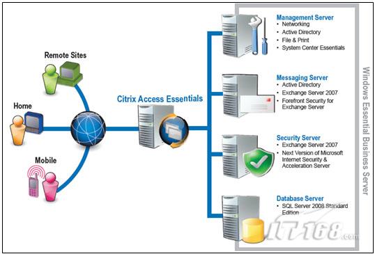 Citrix XenApp 基础版是为中小企业提供的简洁、高效的远程接入方案。它可帮助企业不高于75的远程用户随时随地,安全的远程接入企业windows 应用以及文件系统。采用Windows Essential Business Server(EBS),可以通过EBS控制台实现集中化管理,简化对远程用户的应用发布。