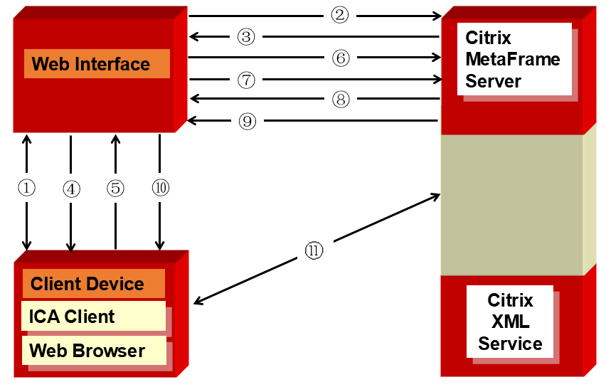 2、Web Interface站点将用户帐号信息传递给(XenApp)AppCenter。