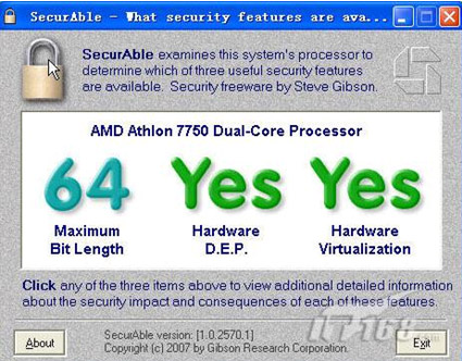 其中一台同样配置的机器安装了XenServer5.5.0免费版。同时这台台式机经SecurAble检测是完全支持硬件虚拟化功能的。如下图所示。