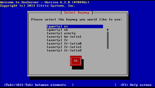2.2进入XenServer 安装界面,选择键盘类型为us