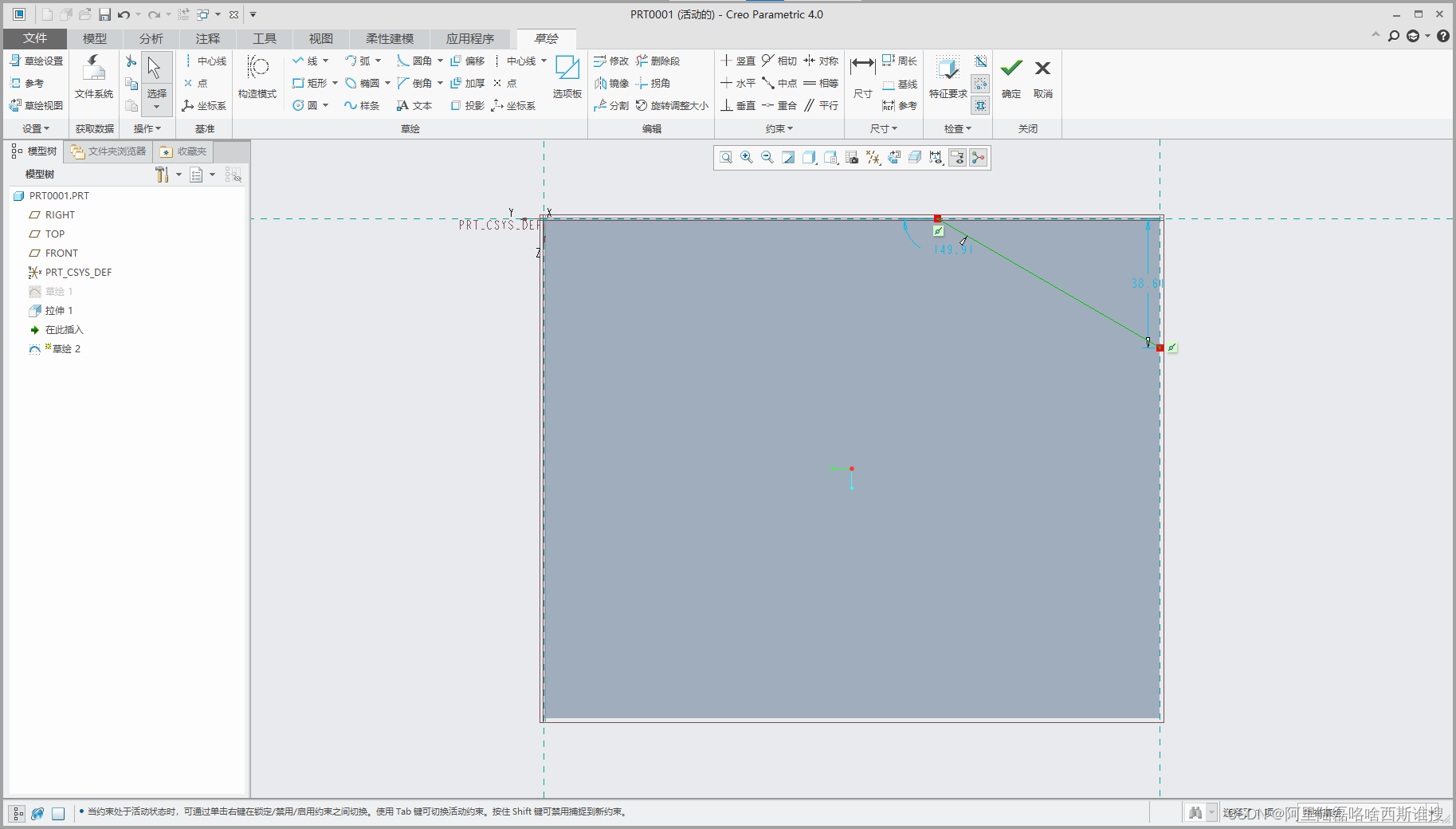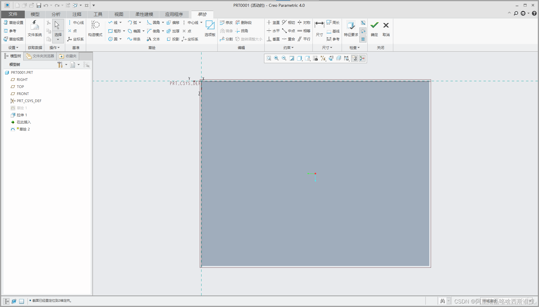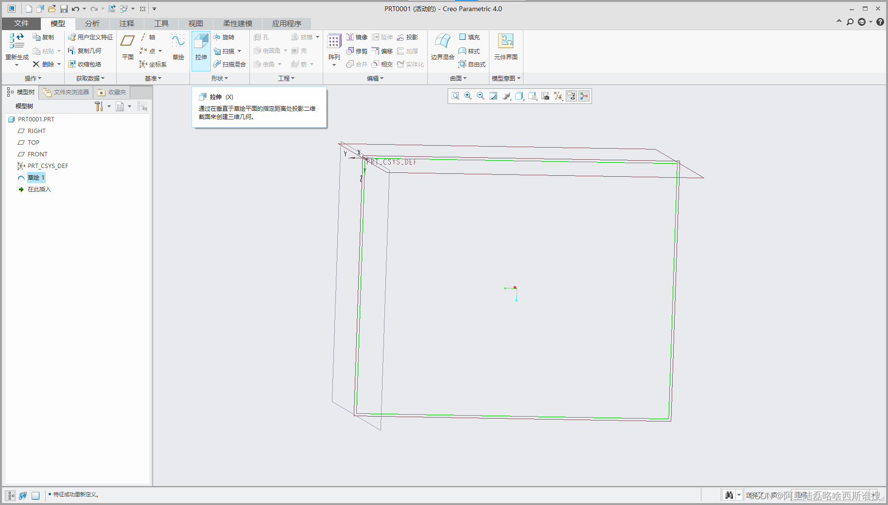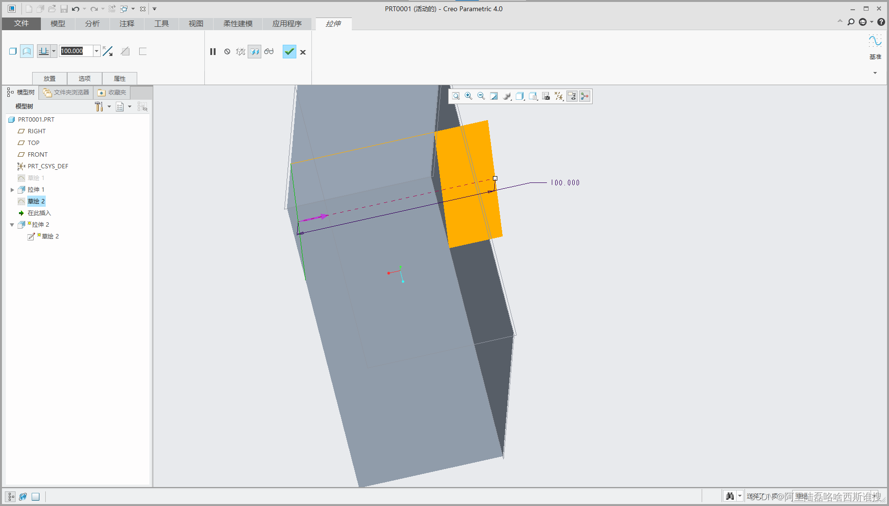 (7)选择草绘2,点击拉伸,选择拉伸为曲面