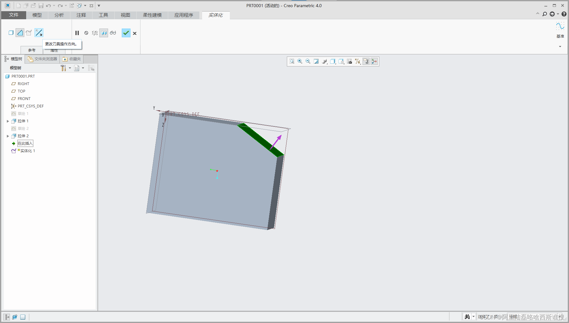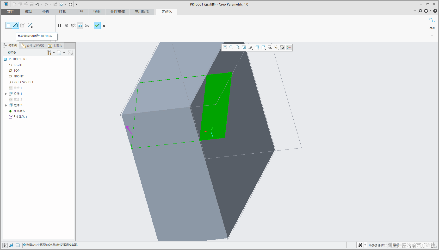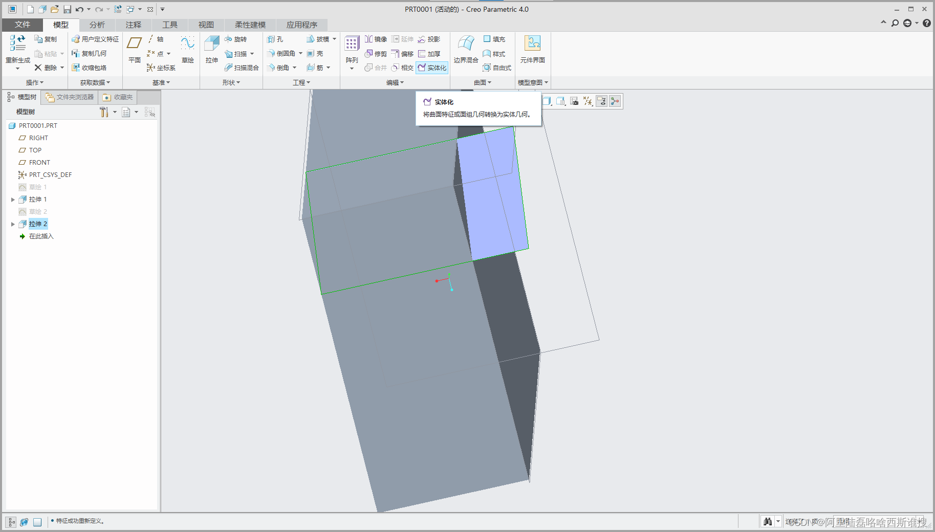 (8)拉伸完成后,选中拉伸平面,点击实体化