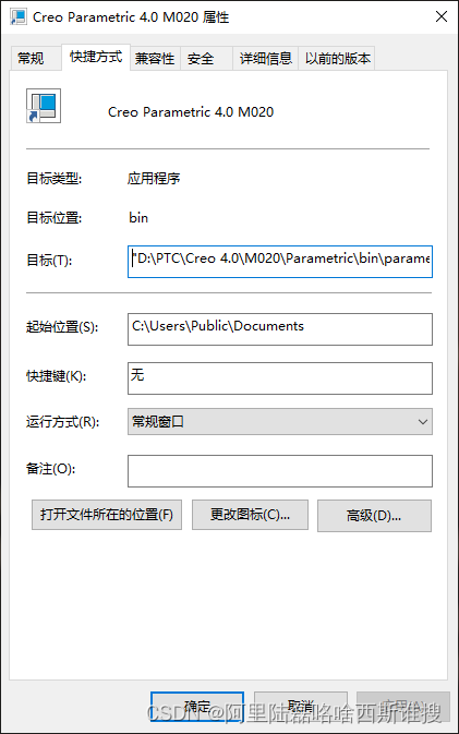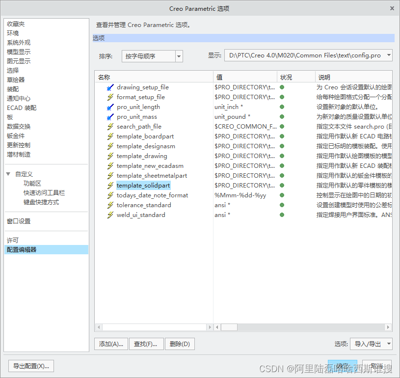 模板值目录: https://www.gofarlic.com\PTC\Creo 4.0\M020\Common Files\templates,不清楚可以点击creo parametric属性中的目标