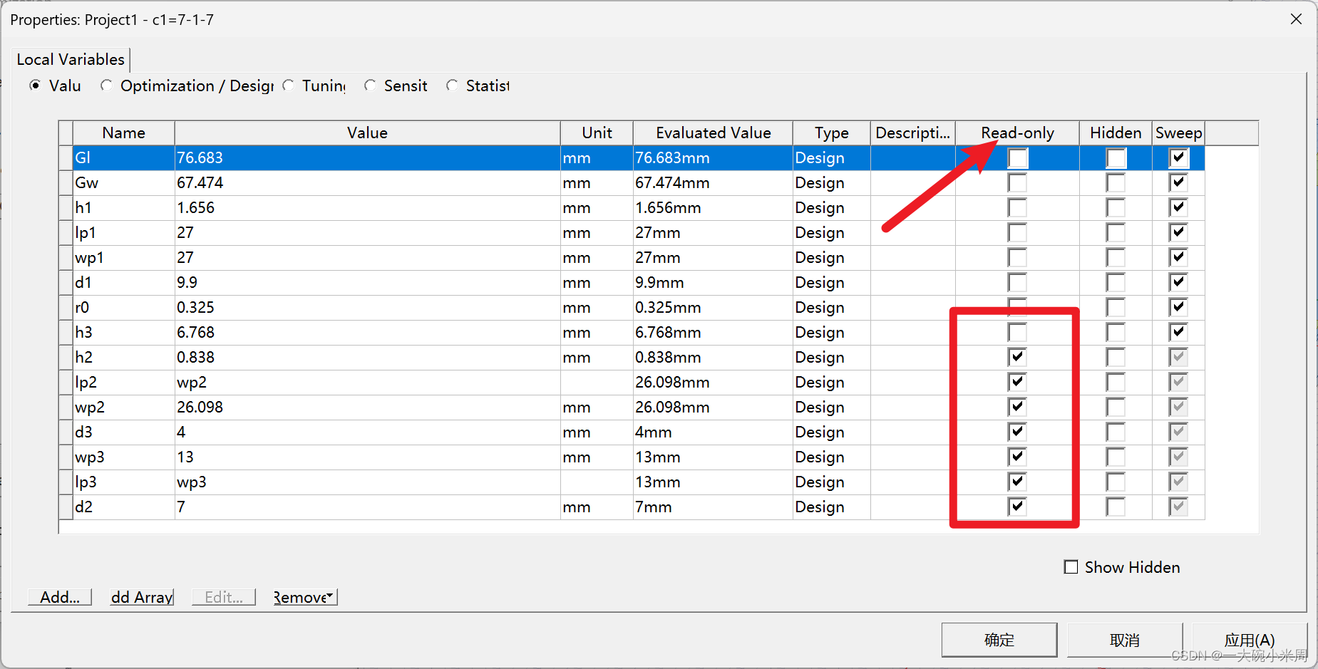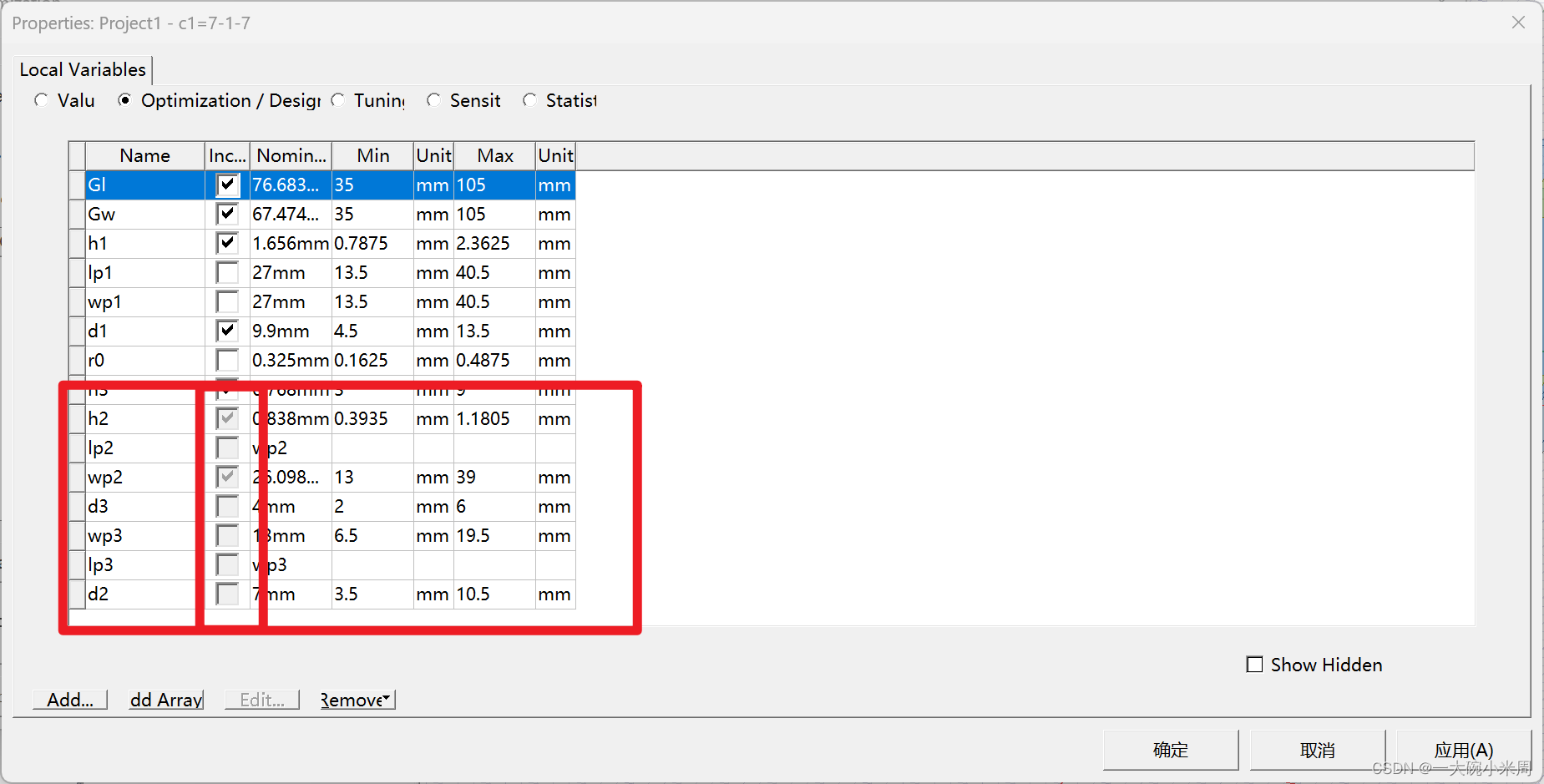 2.为什么在Optimetrics(优化)中部分变量无法选中?