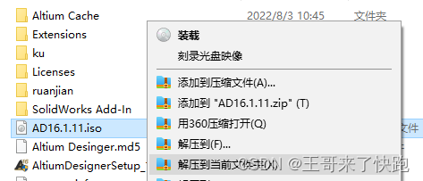 1.右击“AD16.1.11.iso”文件,点击“解压到AD16.1.11”。