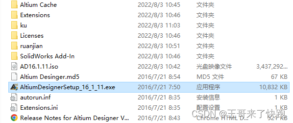 2.解压好后,打开解压好的文件夹双击“AltiumDesignerSetup_16_1_11. exe ”文件。