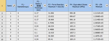 结构的宽度和厚度作为输入变量,弹力,应力值,寿命作为输出变量。后面通过控制结构来优化结构宽度和厚度。