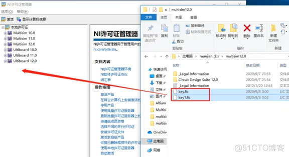 35.将Mulitisim12文件夹下的两个【key.lic】文件,分别拖拽到NI许可证管理器中。