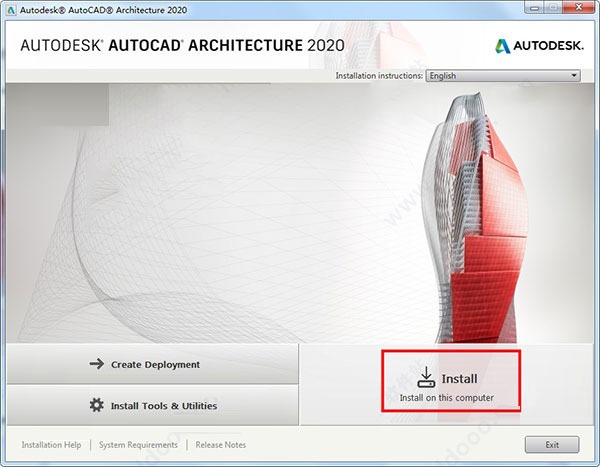 1、先在本站下载安装AutoCAD_Architecture_2020_English_Win_64bit_dlm_001_002.sfx.exe原文件。