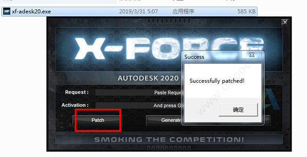 15、以管理员身份打开AutoCAD Architecture 2020注册机“xf-adesk20.exe”,点击“Patch”。