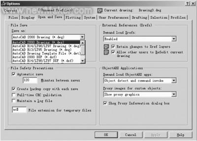 解决方法:转换保存格式。方法是打开主菜单中“工具”菜单下的最后一项“选项”对话框,如图15所示。