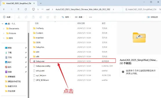 1、打开下载好的cad 2025文件,对安装程序setup选择以管理员身份运行: