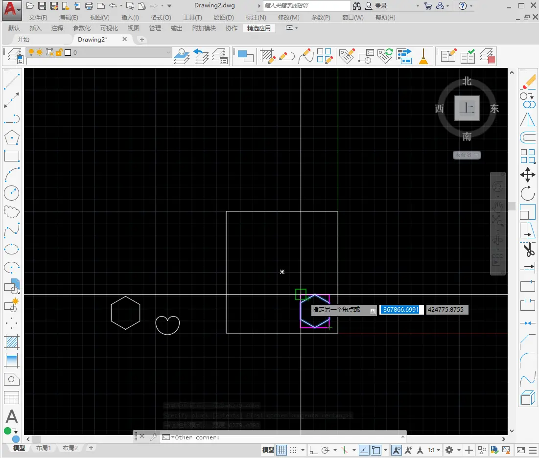 4.根据提示“是否确定选择位置” 选择“YES”或空格键确定。然后指定block的两个角点(点击紫色方框的左下点和右上点),按下enter键确定命令。