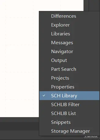 首先我们把原理图库点开,就是schlib的那个文件,然后把右下角的panel设置为SCH library。