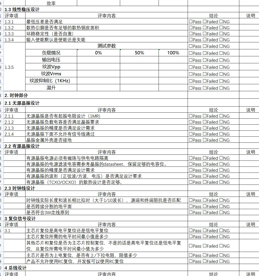 原理图方面:规范通常以checklist的表格形式存在,如下有些联发科,海思,路飞自己整理的等。可供学习,积累,迭代