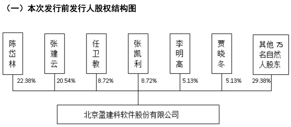 招股书显示,盈建科的前四大股东为陈岱林、张建云、任卫教、张凯利,分别持有公司22.38%、20.54%、8.72%与8.72%的股份,为一致行动人及共同实际控制人,合计持有该公司60.36%股份。