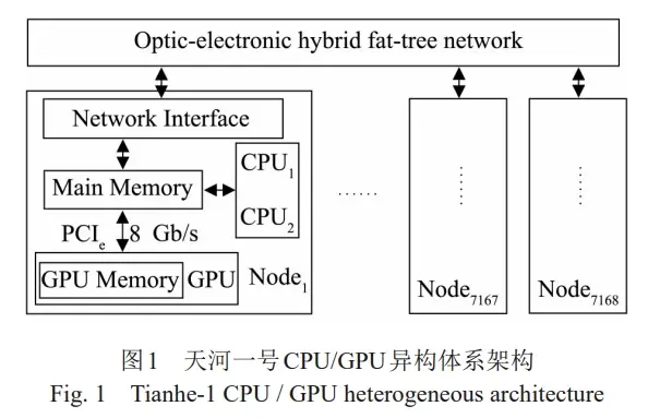 天河E级原型机及神威太湖之光等系统。天河一号采用如图所示的CPU/GPU异构体系架构,