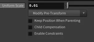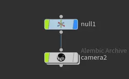 2.在maya中随便k一个摄像机动画并导出为abc,在导入houdini中。由于maya默认单位为厘米,hou为米,需要使用null节点将其缩放100倍