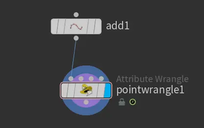 3.使用add节点,并添加point wrangle并粘贴上如下代码。此步是为了获取abc摄像机在世界空间中位置