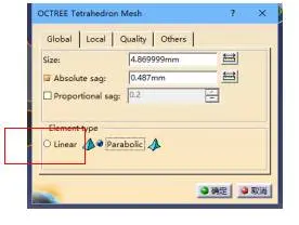 选择四面体网格划分器;尺寸按需定义,记得选择二次元单元(Parabolic)。
