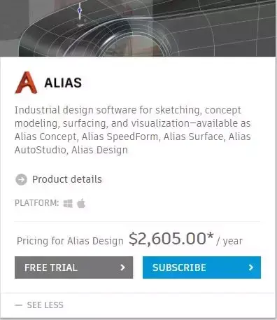 Alias在曲面建模(NUBRS)上有非常强大的功能,其最大的优点是精度高,可以创建复杂的曲面,因此主要应用于工业设计领域,尤其是汽车、航空航天一类有大量曲线外形且对精度有高要求的产品。