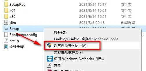 3.找到并选中Setup,鼠标右键选择“以管理员身份运行”