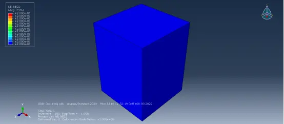 (2)对数应变LE22云图如下,可见对数应变刚好为In(1+NE)=In(1+0.2)=0.1823