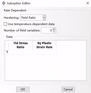 本节内容是对上节内容的一个补充。主要还是Abaqus建立塑性Plastic材料模型中子菜单的操作,下一节将从理论的角度去理解Plastic中各个参数和方法。关于本节内容中,关于温度相关的实验数据定义和场变量相关的定义操作基本一致,(如果适用,选择“使用温度相关数据”来定义依赖于温度的数据。标记为Temp的列出现在Data表中。如果适用,单击Number of field variables字段右侧的箭头,以增加或减少数据所依赖的场变量的数量。),以下忽略这部分重复描述。