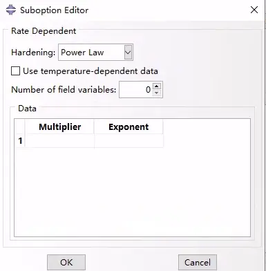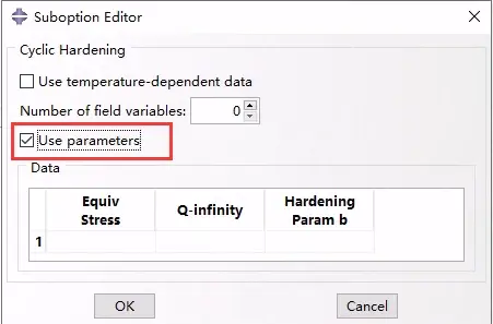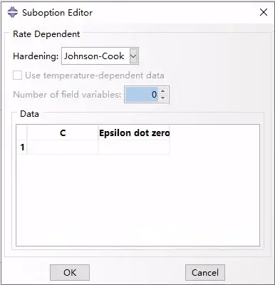 如果在硬化选项列表中选择了Johnson-Cook,则“Data”表数据: