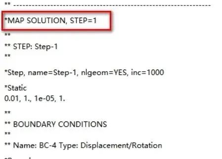 ※特别要注意,如果想要在某一分析步的某一增量步进行分析,需要对重启动频率进行设置,以在第二个分析时的*MAP SOLUTION命令后指定映射的分析步和增量步数。