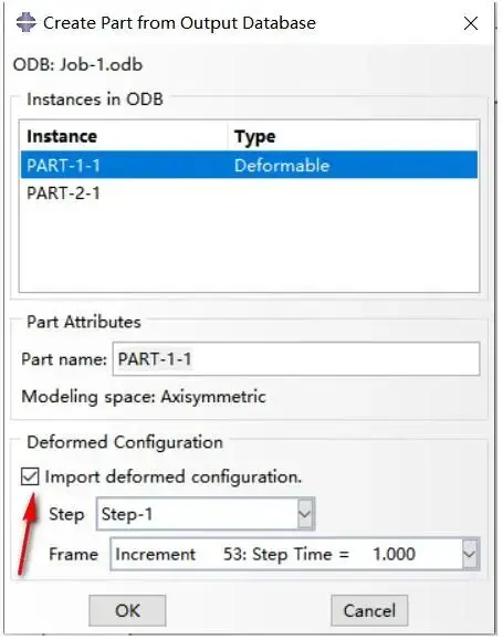 之后创建第二个分析,模型来自第一个分析里的odb文件,这里注意,从odb里导入的模型只能是网格部件,我们导入变形后的网格部件,可以使用GUI方式导入后使用脚本命令根据网格部件创建部件,也可以直接使用脚本命令导入并创建部件。