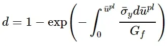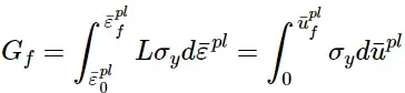 该表达式引入了等效塑性位移的定义¯u pl,作为损伤发生后屈服应力的断裂功共轭(每单位面积的断裂功)。损伤发生前: