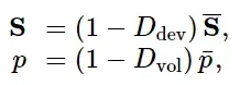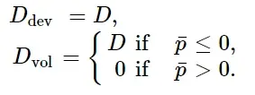 对于具有三维应力状态的单元(包括广义平面应变单元),剪切刚度将退化到最大值Dmax,导致偏应力分量软化。然而,只有当材料受到负压(即静水压力)时,体刚度才会下降;在正压力下没有体积退化。这对应于类似流体的行为。因此,退化偏差S和压力p应力计算为:
