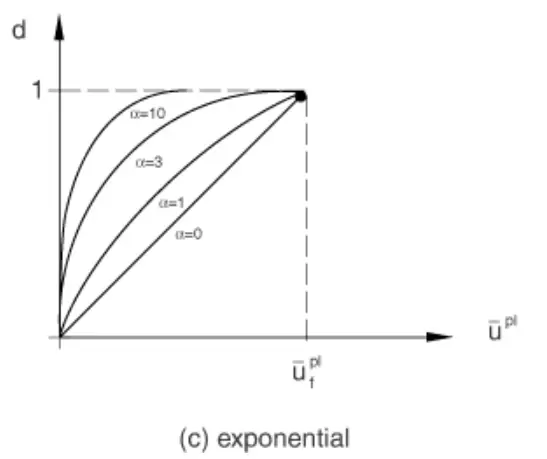 则可以指定失效时的相对塑性位移,¯u pl f 和指数 α。损伤变量为:
