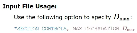 在这种情况下,D max决定了单轴拉伸的最大允许退化(D≤D max)。输出变量SDEG包含D单位的值。