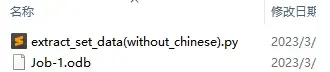 将python文件和odb文件放在一个文件夹,如下图所示。注意其中的python文件不能有任何汉字。这里的py代码和以前的内容相同,只不过把汉字都去除了,具体如下。