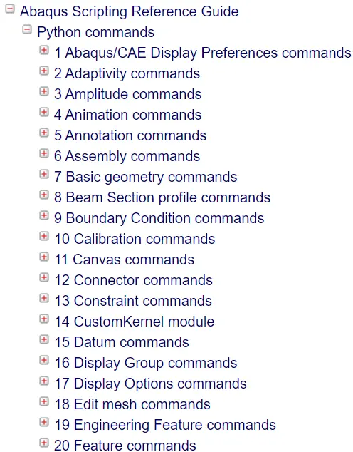 图 1. Abaqus脚本指南(Scripting Reference Guide)中给出了几乎所有功能的python命令