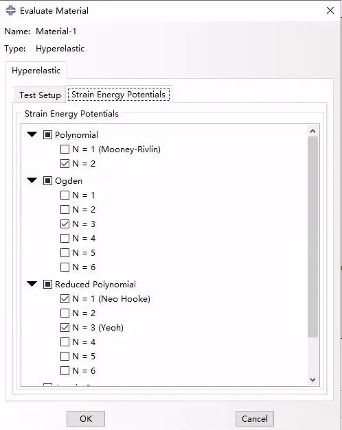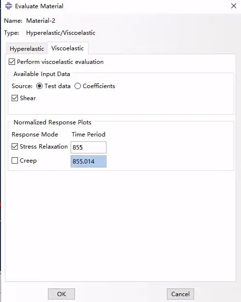 经比较,选用Yeoh模型,记下他的材料参数,返回材料属性模块,新建材料,采用刚刚得到的Yeoh模型系数的方式定义粘弹性: