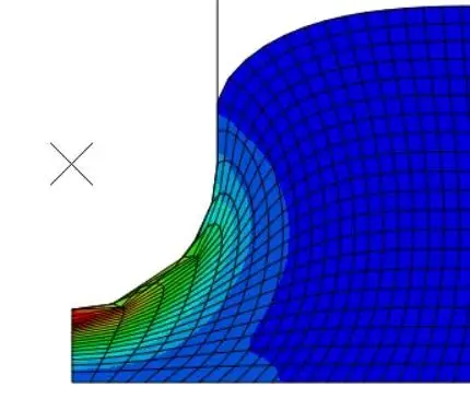 可以看到接触位置及附近,网格得到了平滑处理保正了较好的质量。而不使用ALE方法的网格则发生了扭曲畸变,这种单元畸变可能会导致计算的终止。