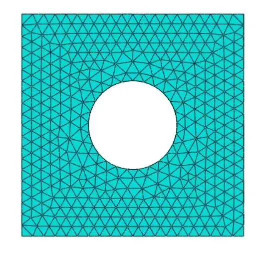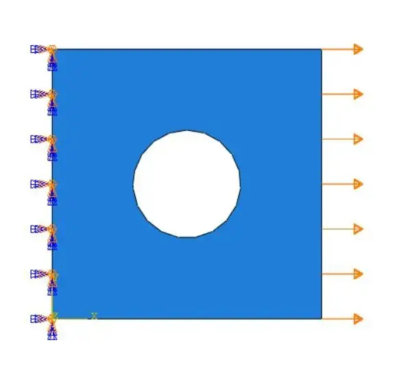 模型在ABAQUS中直接构建,模型空间选择3D-Deformable,建立一个带圆孔的尺寸10X10X1的厚板。