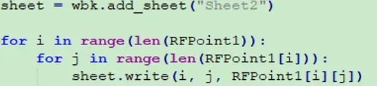 利用xlwt模块输出二维元组到excel的命令语句如下(参考CSDN等)。该命令语句输出的是加载点的位移U2的历程变量。由于是二维元组,因此这里j的取值为j=0或j=1。而i的取值个数是len()个。