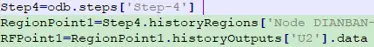 查看history regions后,我们发现:加载点在可视化界面里的名称是 SET-XXXXX;在odb里的名称(history regions)是'Node DIANBAN-2.XXX'。其他节点也是类似情况,即历程变量对应的节点,在可视化界面和odb里具有不同的名称。