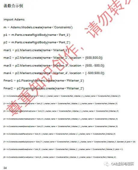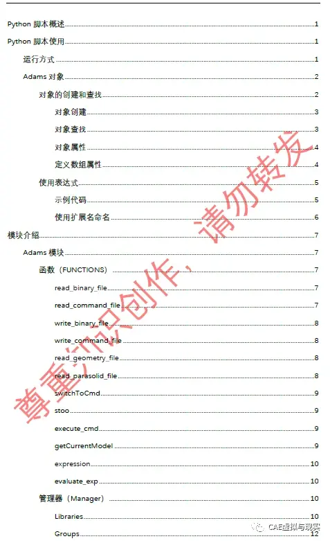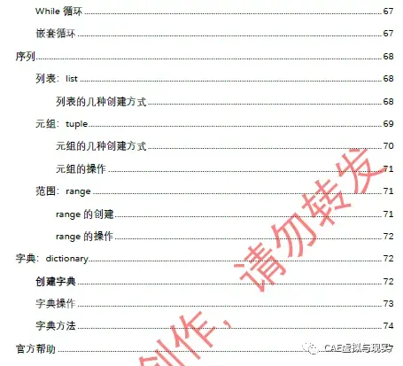 同时,教程中也加入了Python语言在基本语法、程序结构控制(IF-ELSE/FOR/WHILE/BREAK/CONTINUE)、包和模块、序列、字典的教程,通过结合这些基础的Python语法,能够更加有效的编写Adams二次开发程序。