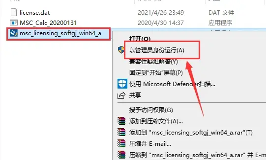 ☉7.鼠标右击该文件夹下的【msc_licensing_softgj_win64_a】选择【以管理员身份运行】。