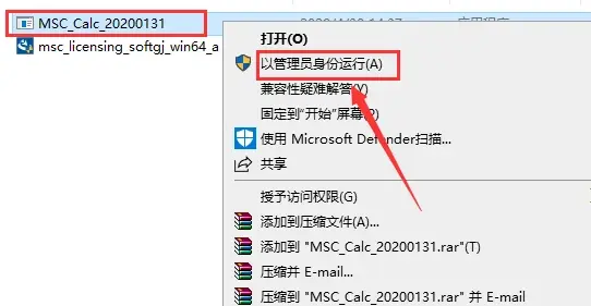 ☉3.鼠标右击【MSC_Calc_20200131】选择【以管理员身份运行】。