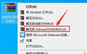 ☉1.鼠标右击【Adams2020(64bit)】压缩包选择【解压到 Adams2020(64bit)】。