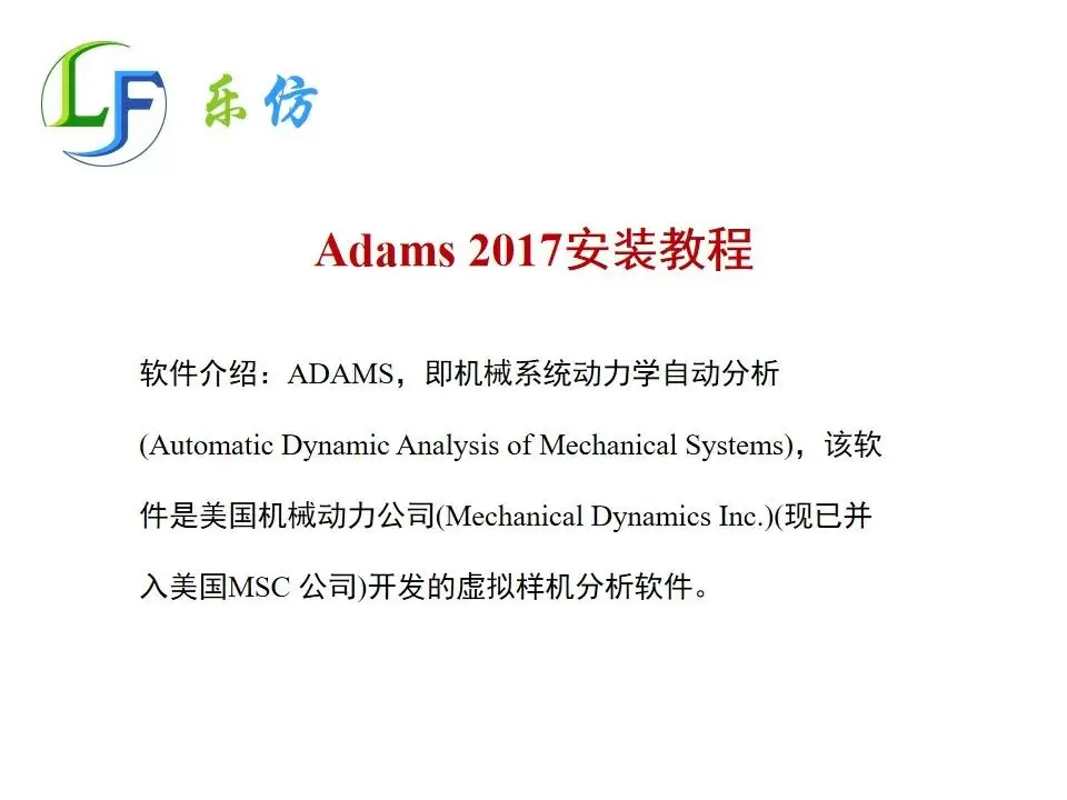 软件名称:Adams2017