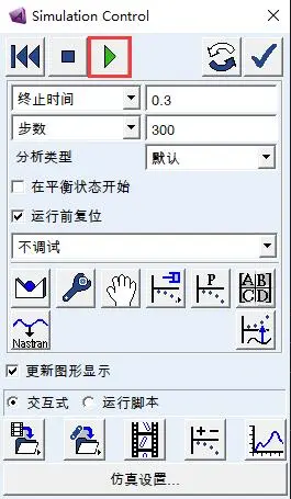 4、点击仿真开始分析(在这里,部件已经添加了旋转副Revolute joint,并基于此旋转副添加了运动副驱动Rotational Joint Motion)