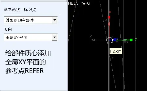 1、首先给部件的质心位置添加基于全局XY平面的参考点REFER;在这里部件的质心是P2.cm(cm是质心的英文缩写)