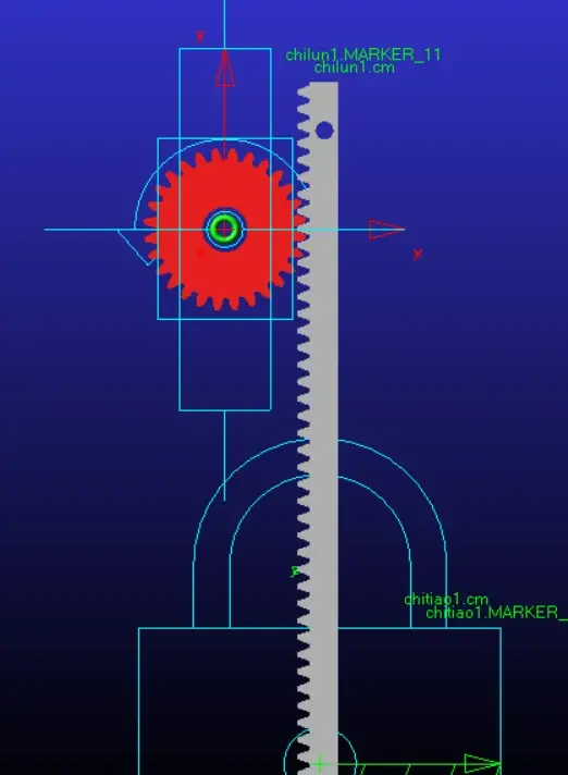 流程:导入xt文件→分别给齿轮、齿条添加转动和移动副→添加标记点到大地上或机架上→添加齿轮副→添加驱动